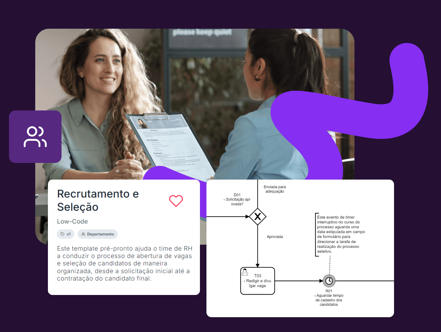 Este template pré-pronto ajuda o time de RH a conduzir o processo de abertura de vagas e seleção de candidatos de maneira organizada, desde a solicitação inicial até a contratação do candidato final.
