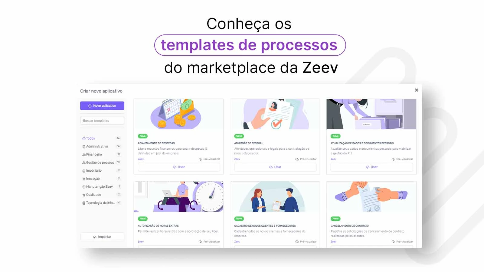 Conheça os templates de processos do marketplace da Zeev