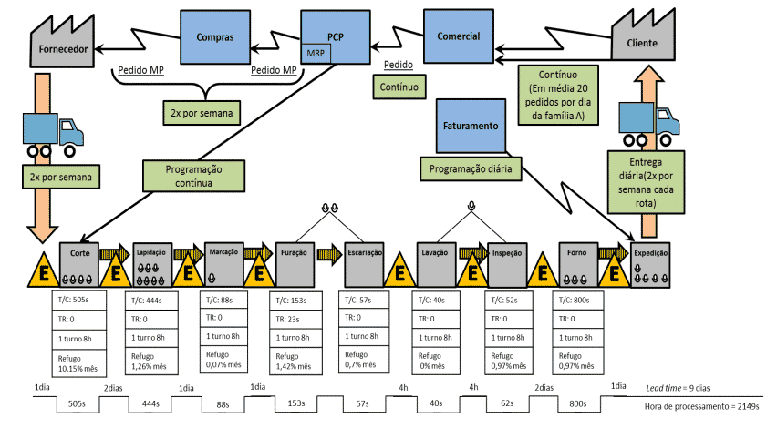 Todo este mapeamento tem o objetivo de buscar a eliminação de desperdícios, redução de lead time e implementação de melhorias.